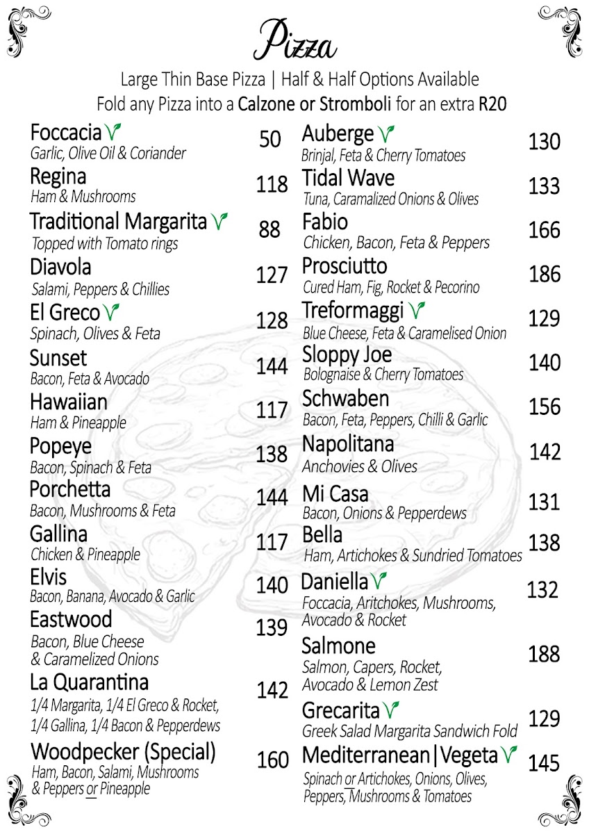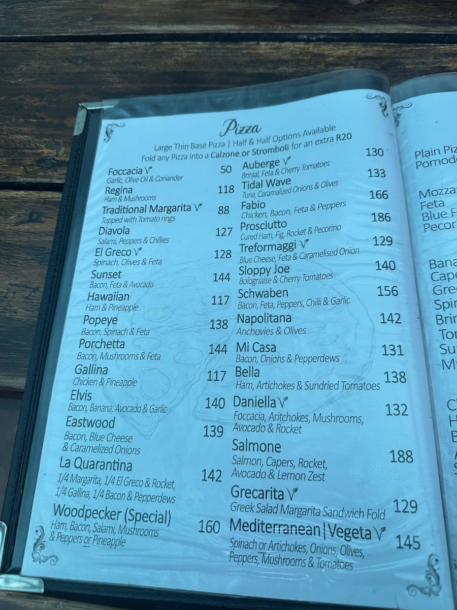 If you're in Swellendam and craving delicious, fresh pizzas with a twist, look no further than Woodpecker Pizzadeli Menu. Located at 270 Voortrek St, this cozy gem offers a delightful variety of handcrafted pizzas, each packed with rich flavors and topped with the finest ingredients. Whether you're in the mood for a classic Margherita or a more adventurous combination, you'll find something that hits the spot. The menu also includes mouthwatering deli options, from light bites to hearty meals, ensuring there's something for everyone. Perfect for a casual lunch or a relaxed dinner, the inviting atmosphere makes it a great place to unwind with friends or family.